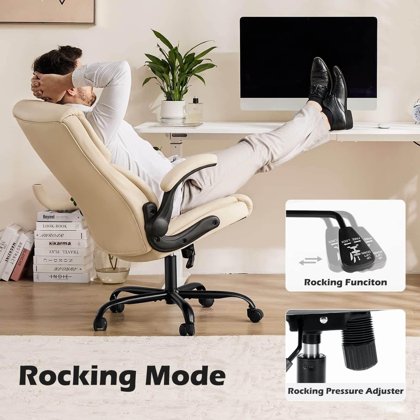 【FREE ADJUSTMENT】 - Simple pneumatic controls let you raise or lower your seat and rock back in your chair. Pull out the handle to tilt back, push in to stop tilting. Underneath tilt tension knob controls the tension of reclining, you can adjust it to your personal preferences.