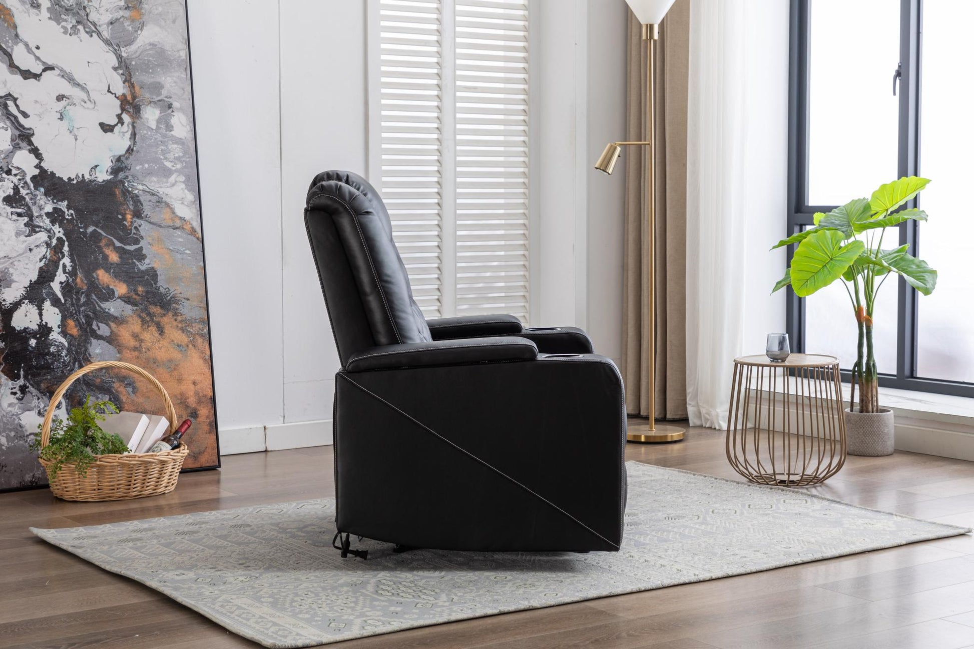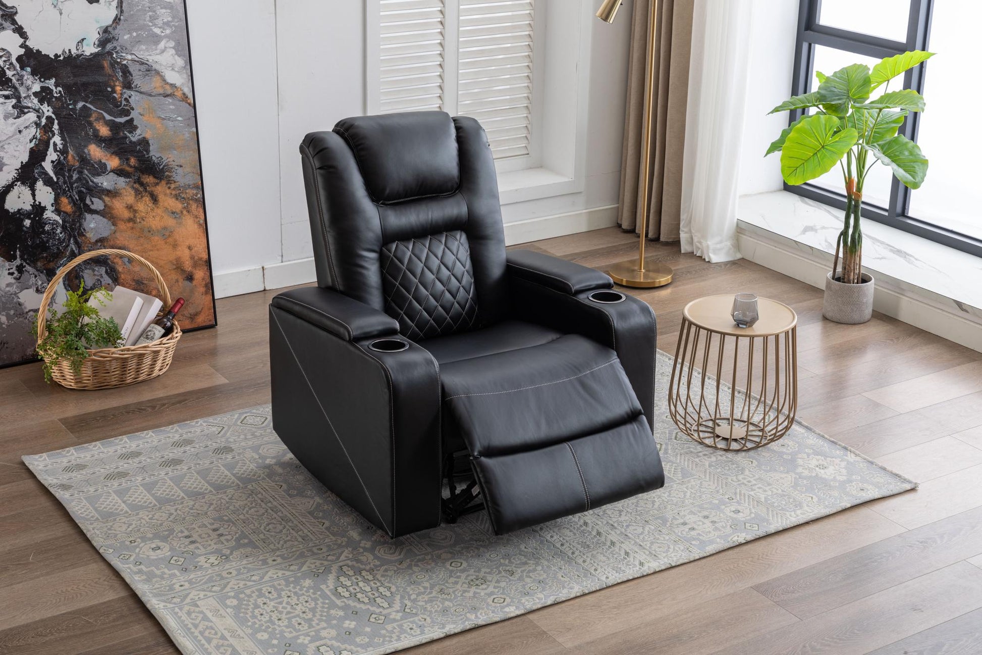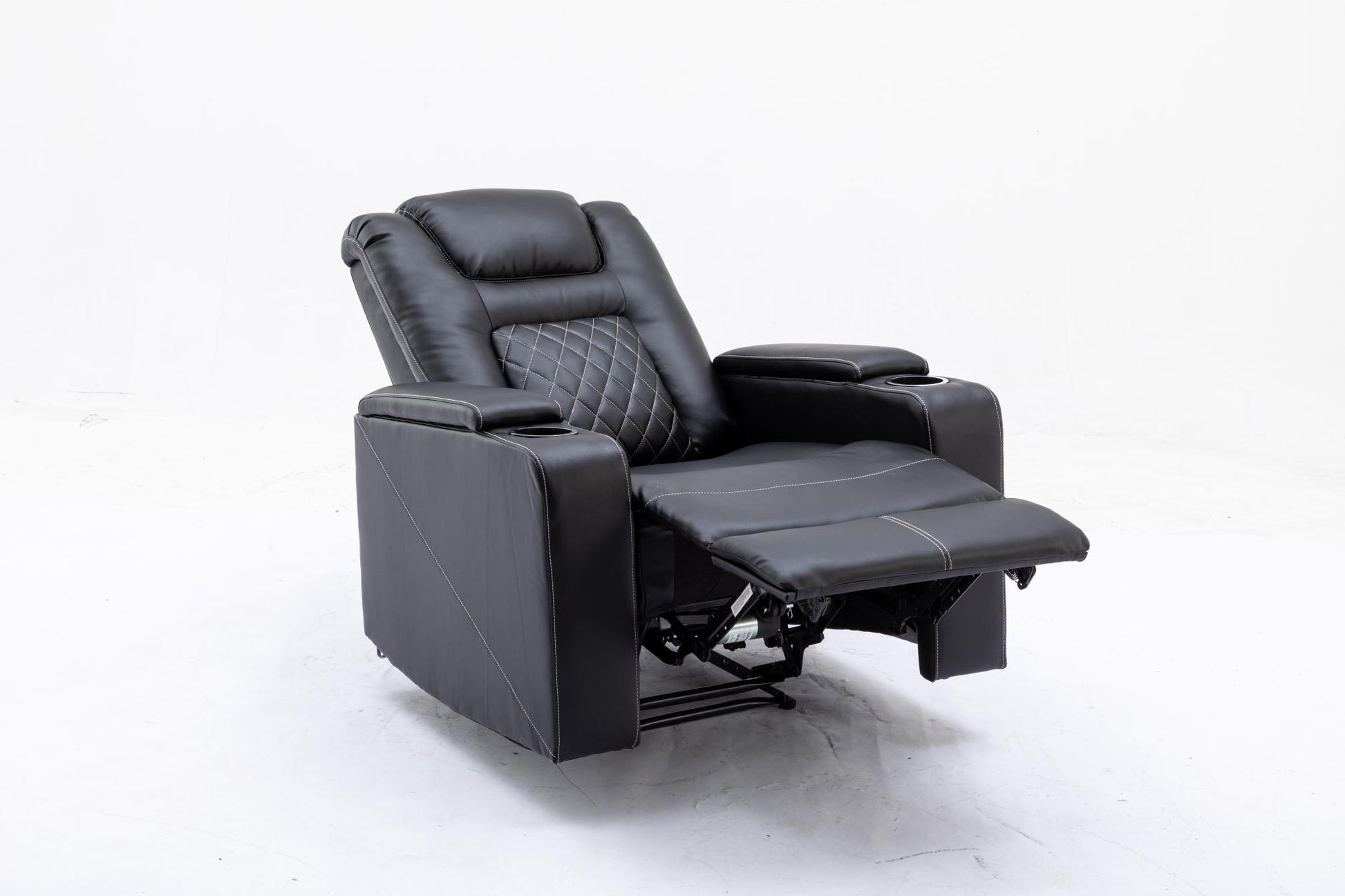 Electric Power Recliner Chair with USB Ports and Cup Holders, Breathable Leather Home Theater Seating with Hidden Arm Storage