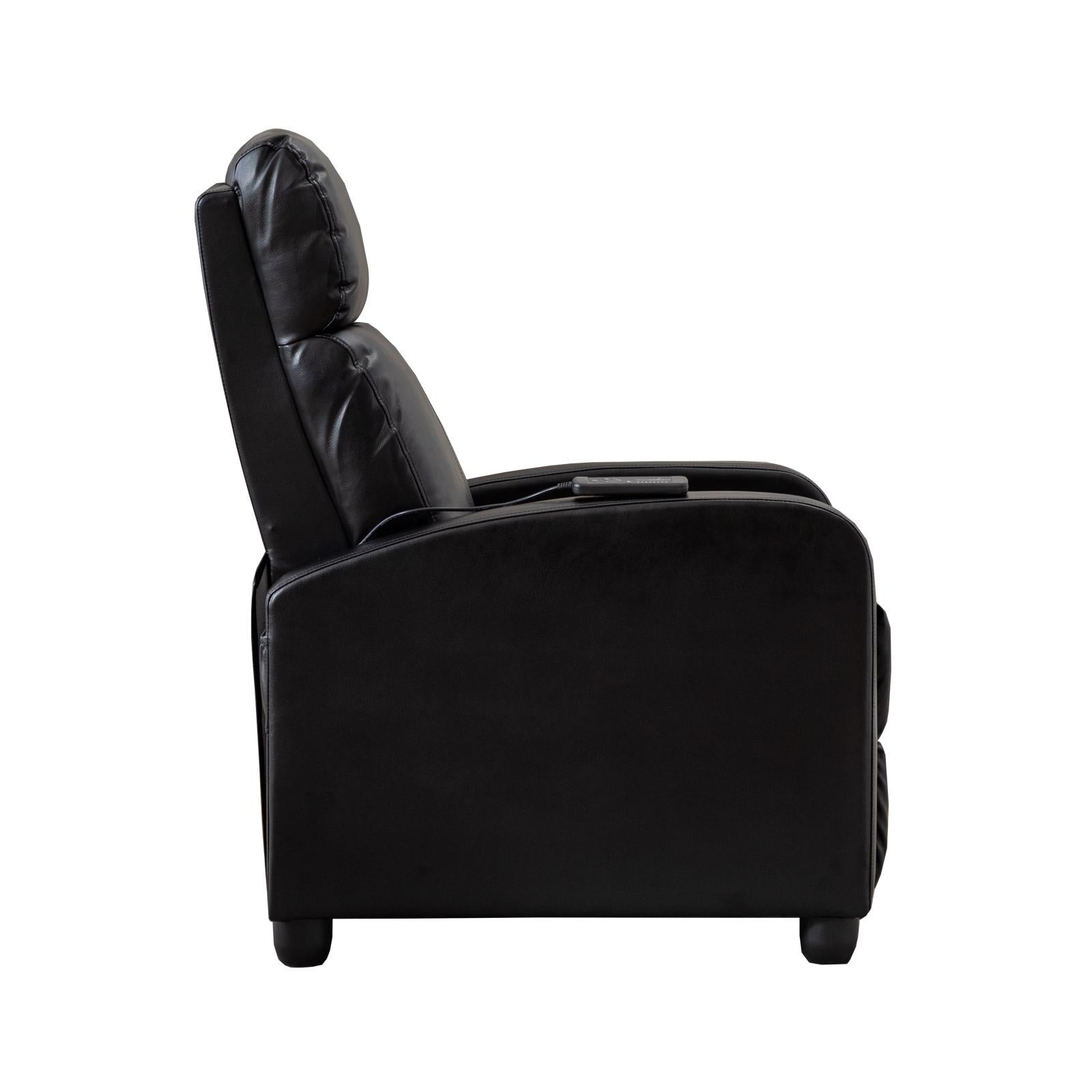 【Adjustment Small Recliner Chair】: This is a small but facile reclining chair for living room and bedroom, perfect for limited space. Push the arm of the recliner to extend the footrest from the front for legs stretch and pulls it back on the footrest with your heels until it locks in place when not in use.