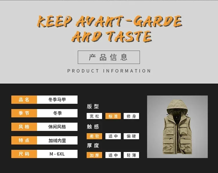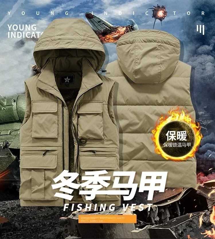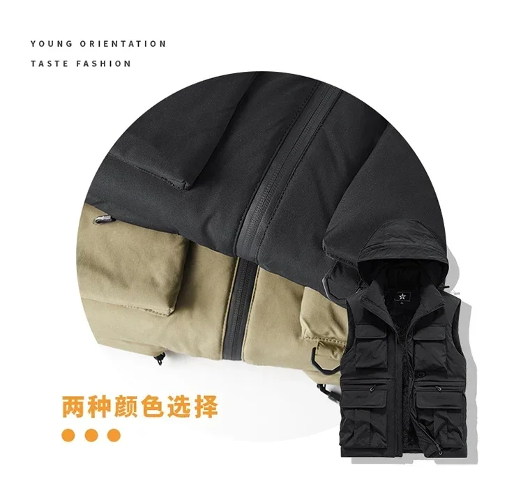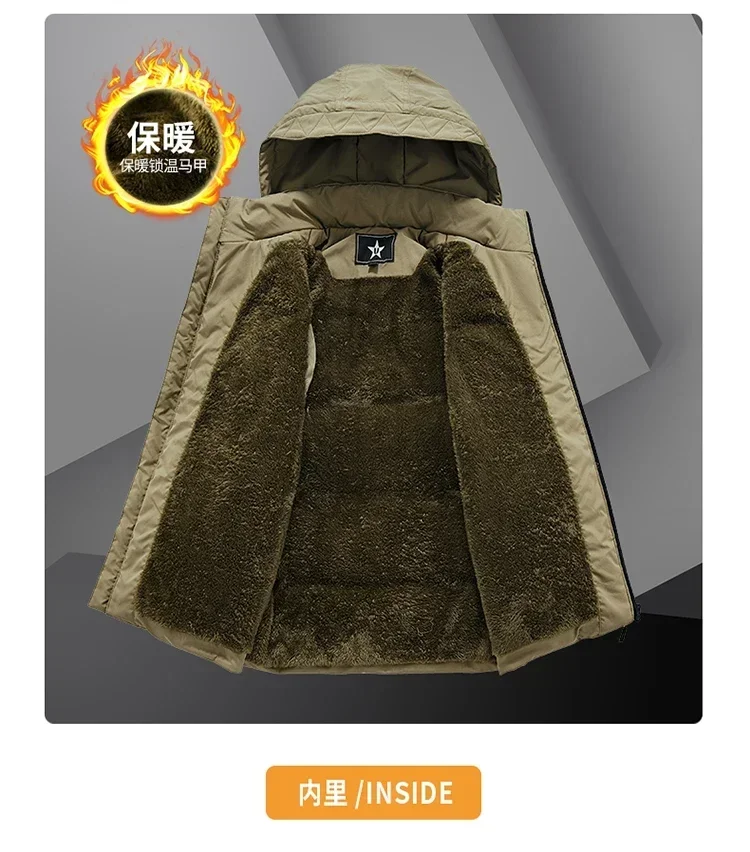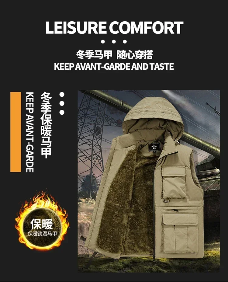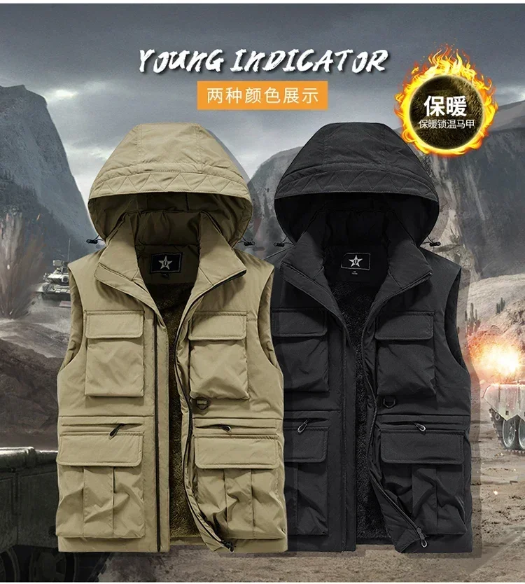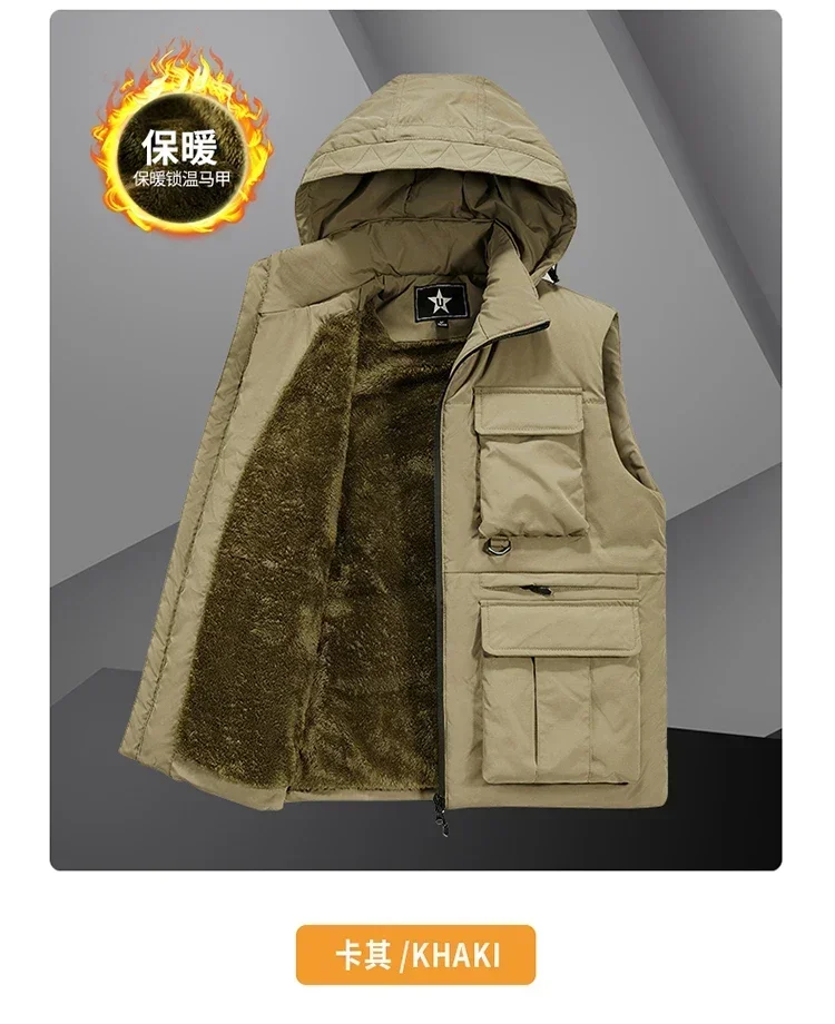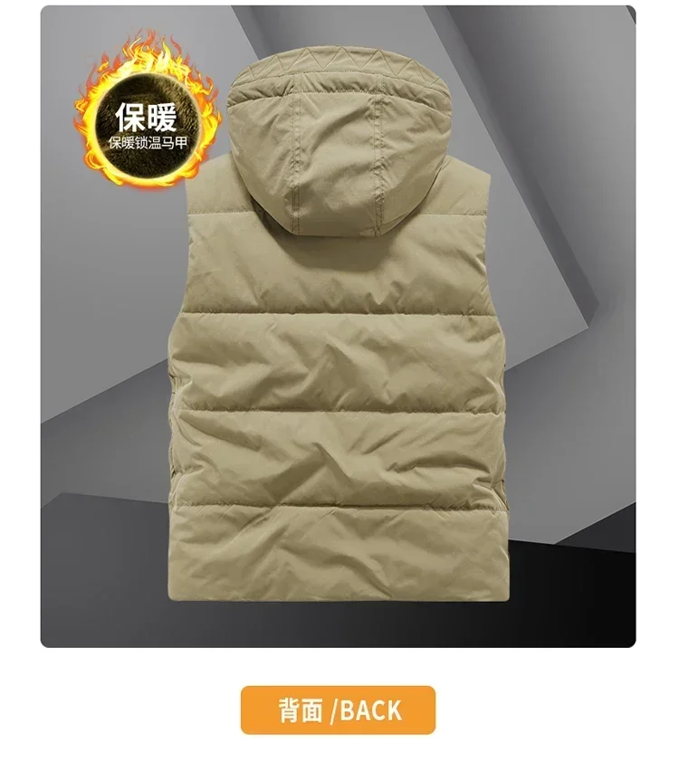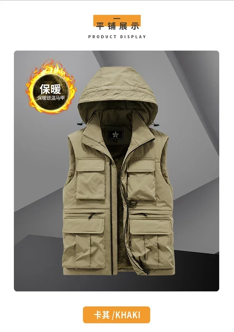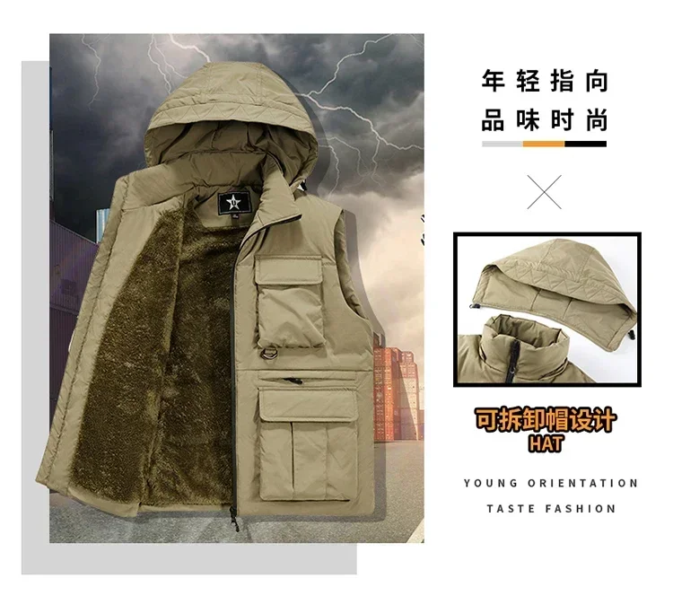 Men's Vest Coat Winter Windbreaker Fashion Sleeveless Jacket Waistcoat Thick Warm Fleece Workwear Tops Detachable hat Cargo Vest