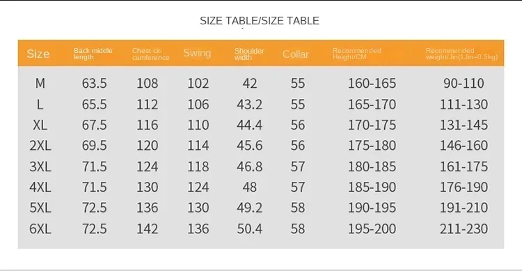 size_info: {"sizeInfoList":[{"length":{"cm":"104","inch":"40.94"},"size":"M","vid":-1},{"length":{"cm":"108","inch":"42.52"},"size":"L","vid":-2},{"length":{"cm":"112","inch":"44.09"},"size":"XL","vid":-3},{"length":{"cm":"116","inch":"45.67"},"size":"XXL","vid":-4},{"length":{"cm":"120","inch":"47.24"},"size":"XXXL","vid":-5},{"length":{"cm":"124","inch":"48.82"},"size":"4XL","vid":-6},{"length":{"cm":"128","inch":"50.39"},"size":"5XL","vid":-7},{"length":{"cm":"132","inch":"51.97"},"size":"6XL","vid":-8}]}